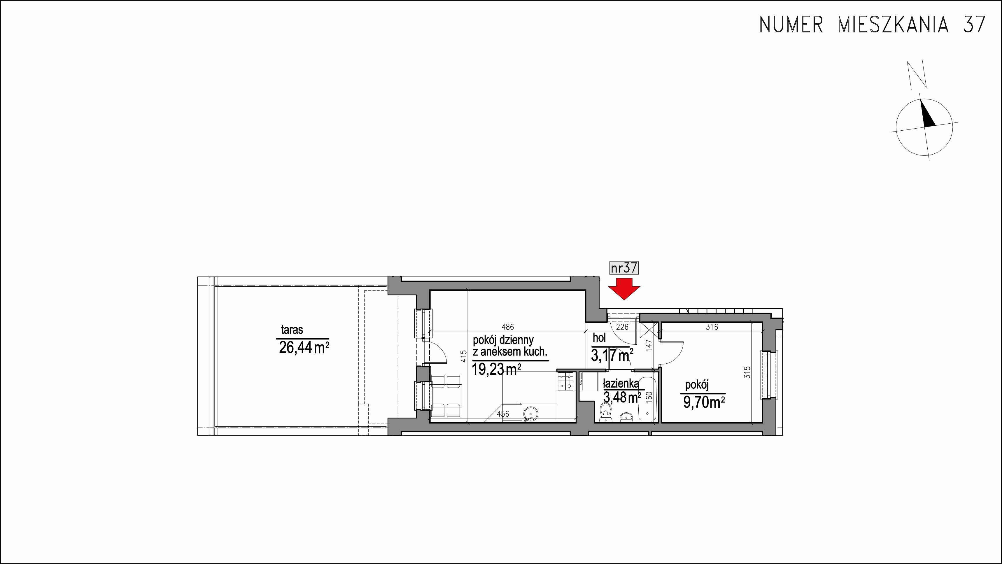 Metraż 35,58 m²