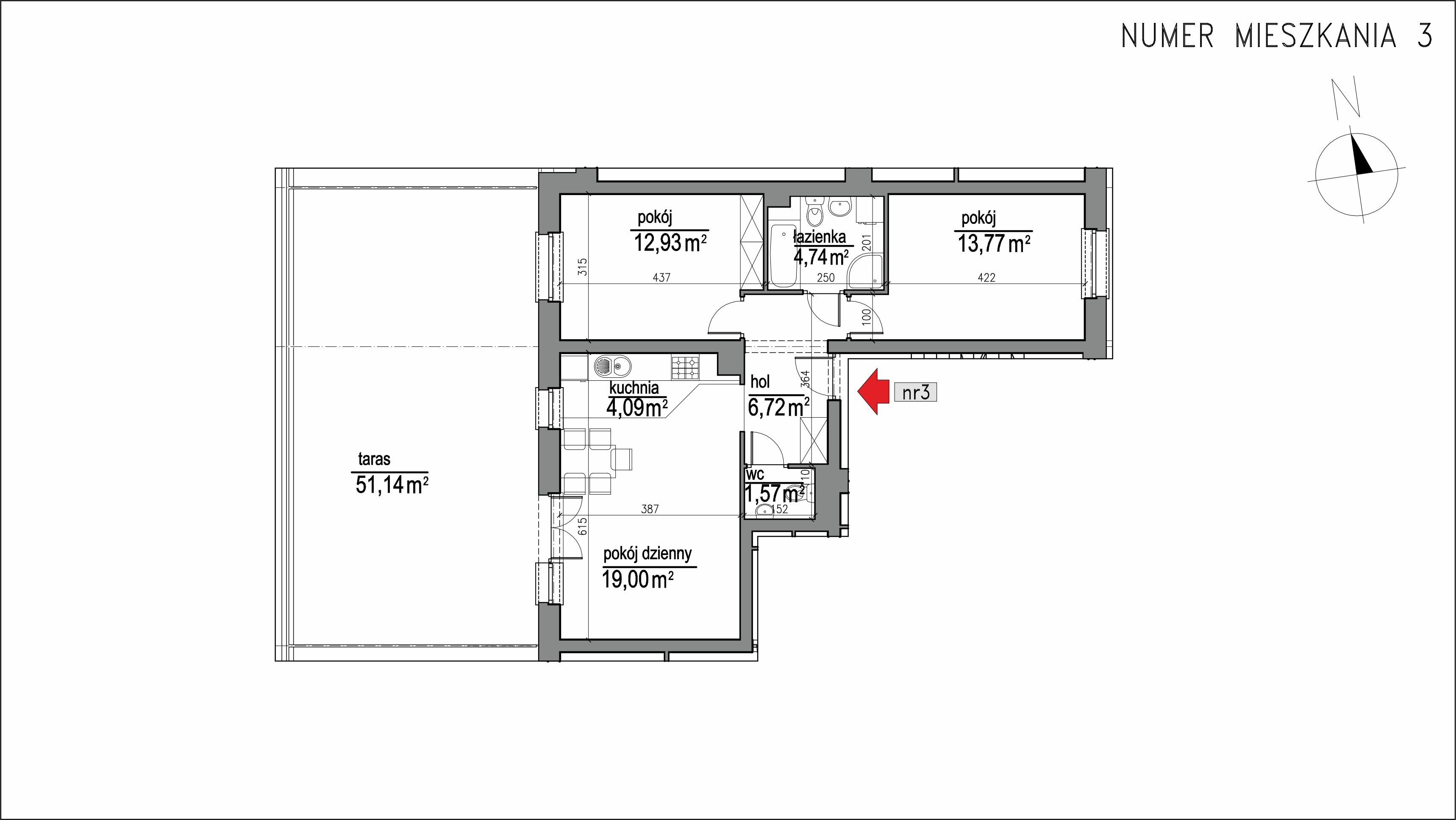 Liczba pokoi w mieszkaniu: 3